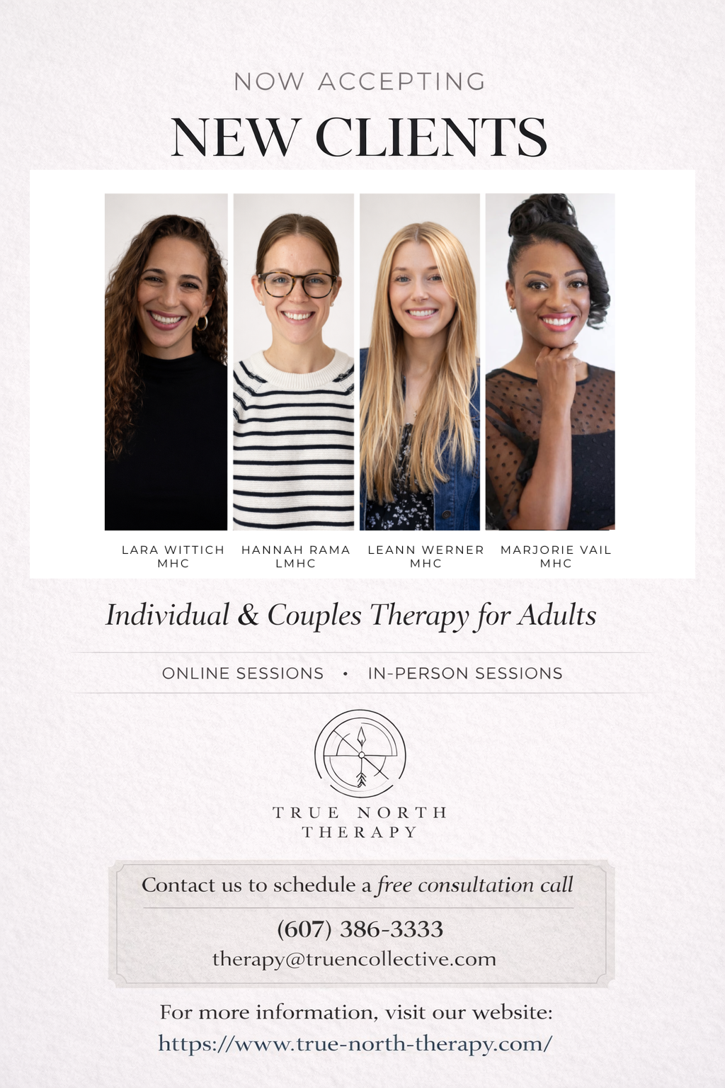 Click here to learn more about True North Therapy, the team and their specialties. They are currently accepting new clients both in the Delhi area and online.